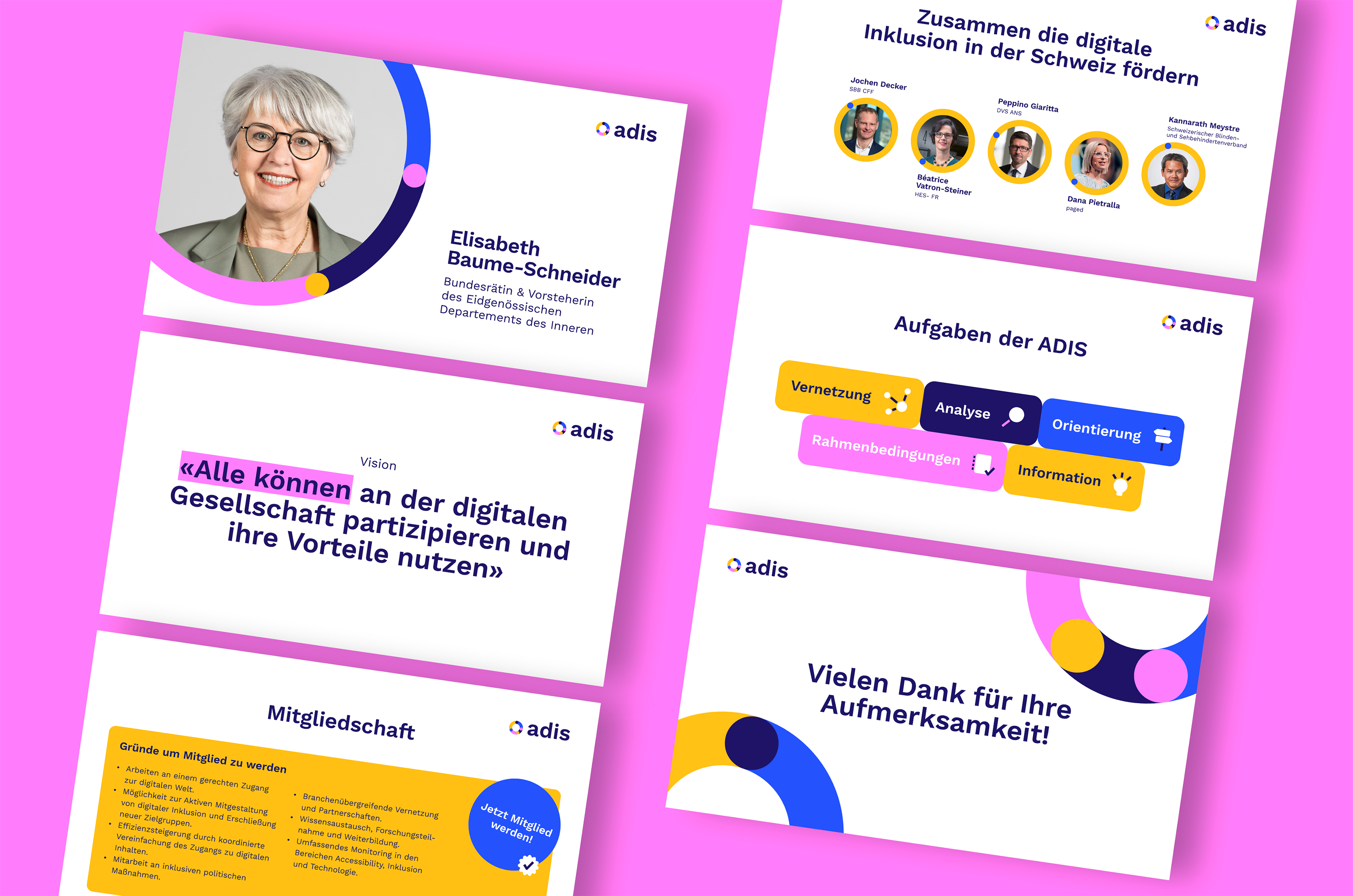 Die Allianz Digitale Inklusion Schweiz (ADIS) verfolgt das Ziel, digitale Technologien und Dienstleistungen für alle zugänglich zu machen. Sie fördert die Vernetzung von Akteuren aus Wirtschaft, Wissenschaft, Bildung, Zivilgesellschaft und Behörden, um die digitale Teilhabe in der Schweiz zu stärken. Die ADIS definiert Standards und bietet Orientierung, Analyse und Information, um den digitalen Graben zu überbrücken und die Zugänglichkeit zu verbessern.
