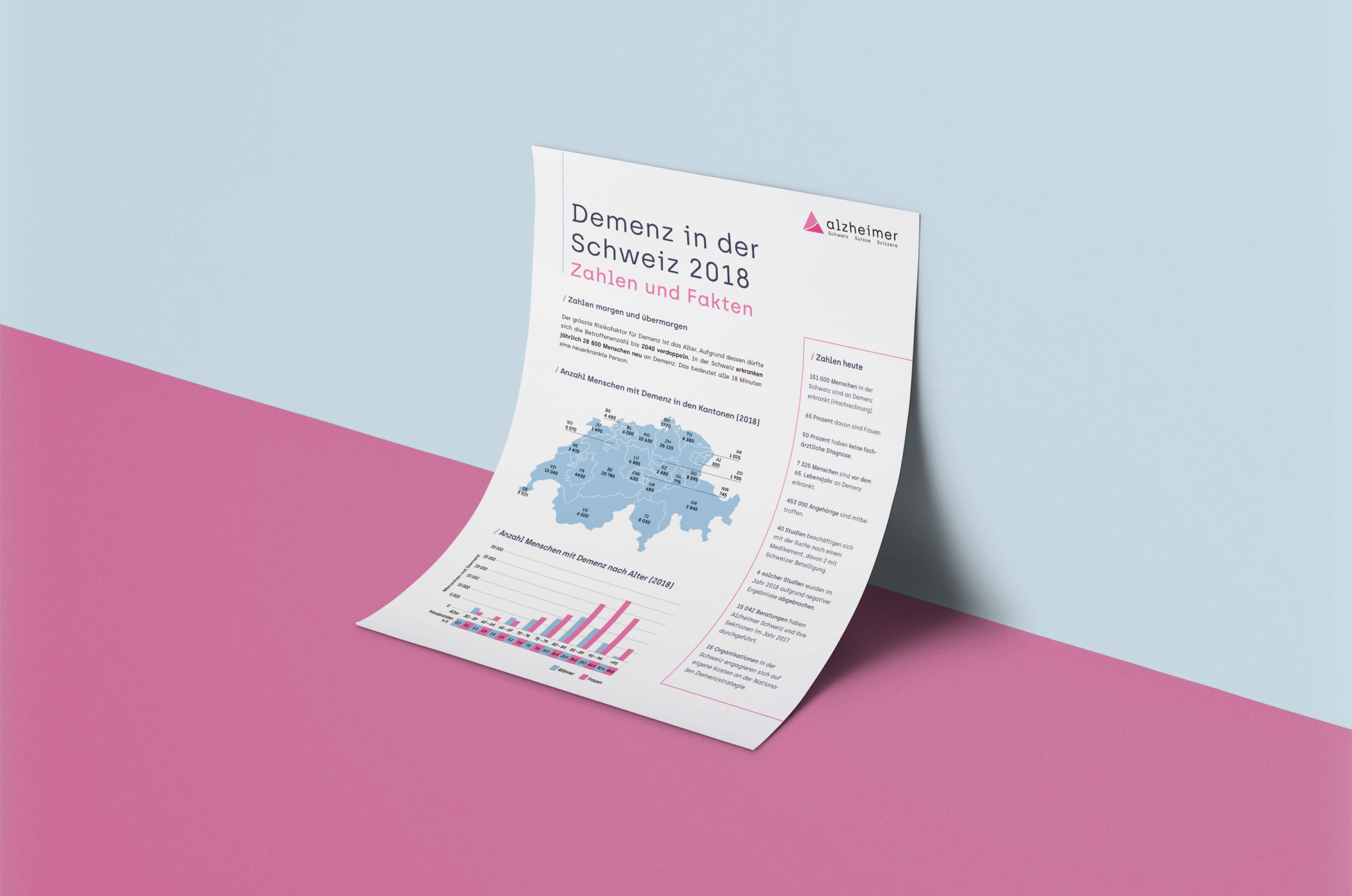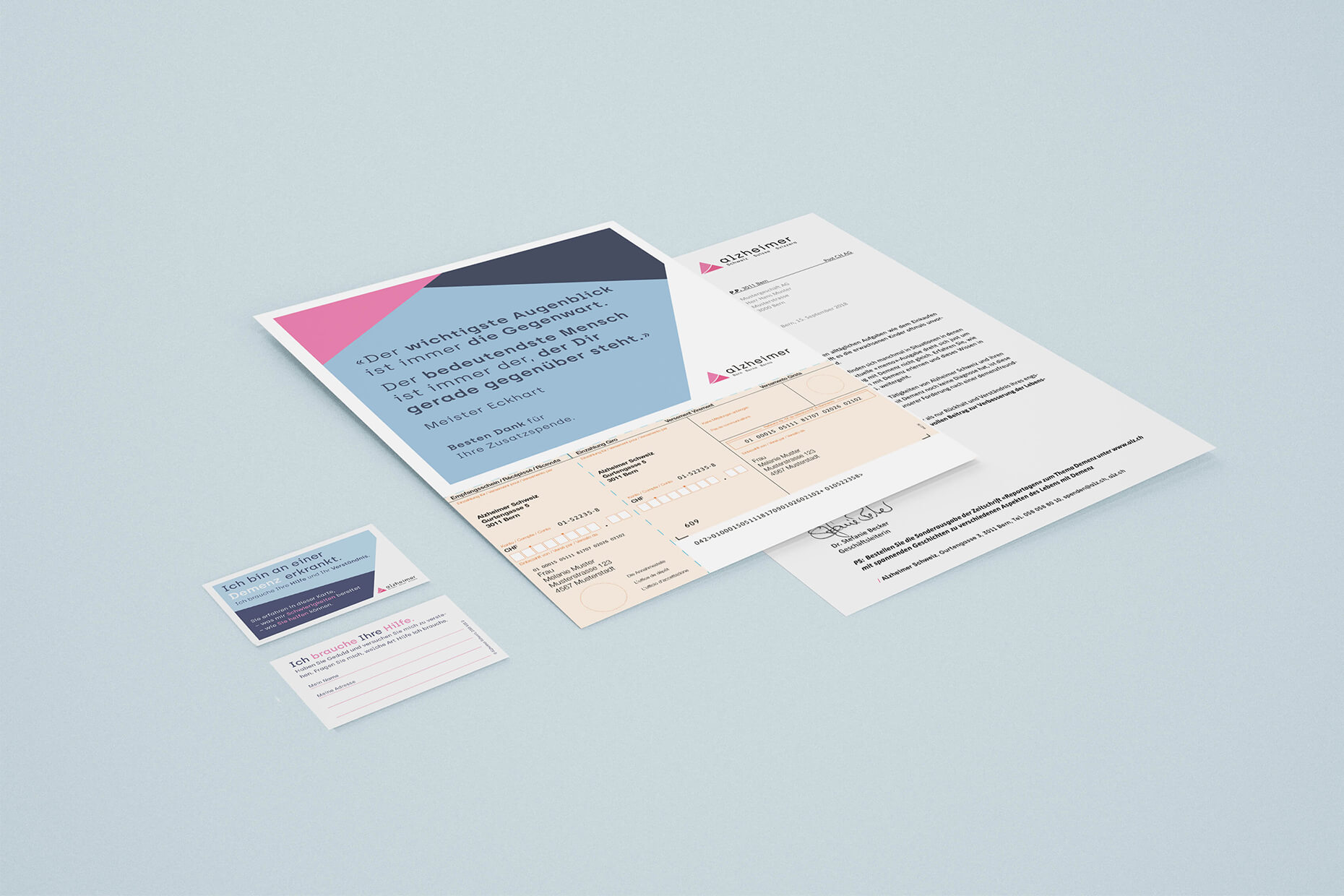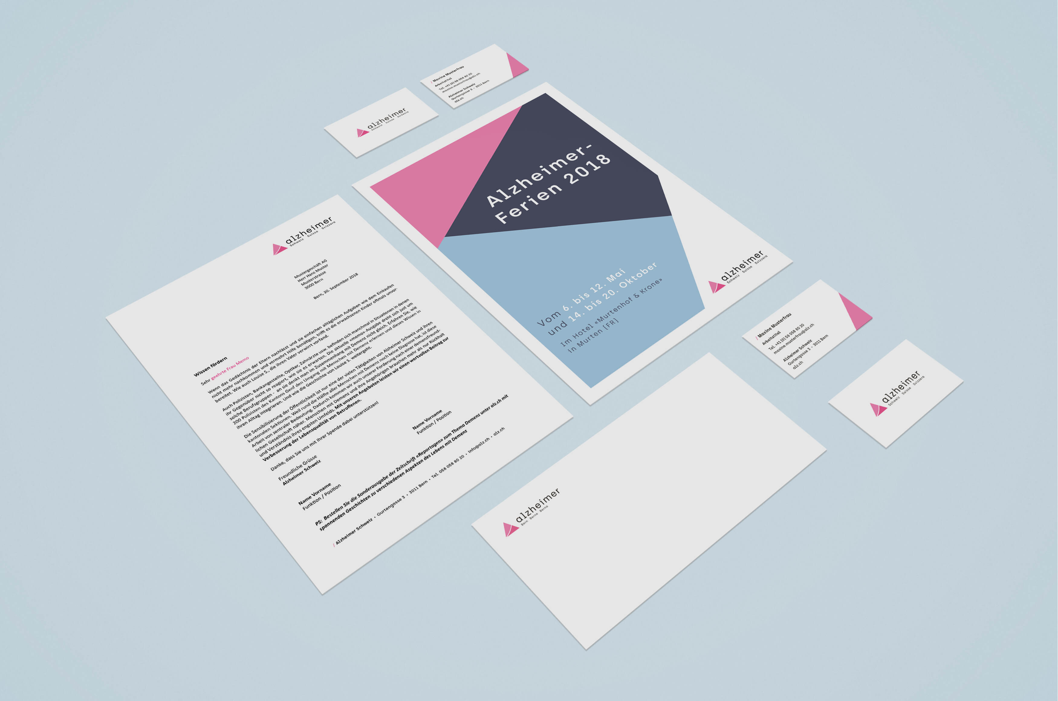 Als konfessionell und politisch neutrale, gemeinnützige Organisation, setzt sich Alzheimer Schweiz für die Würde von demenzkranken Menschen ein. Seit 1988 engagiert sie sich unermüdlich für die Verbesserung der Lebenssituation aller Betroffenen. Um die Arbeit und das Engagement von Alzheimer Schweiz noch mehr nach aussen zu tragen, durften wir für die Dachorganisation und ihre 21 Sektionen das Logo refreshen und ein neues Corporate Design erarbeiten, welches als Grundlage in der gesamten On- und Offinekommmunikation von Alzheimer Schweiz zu tragen kommt.