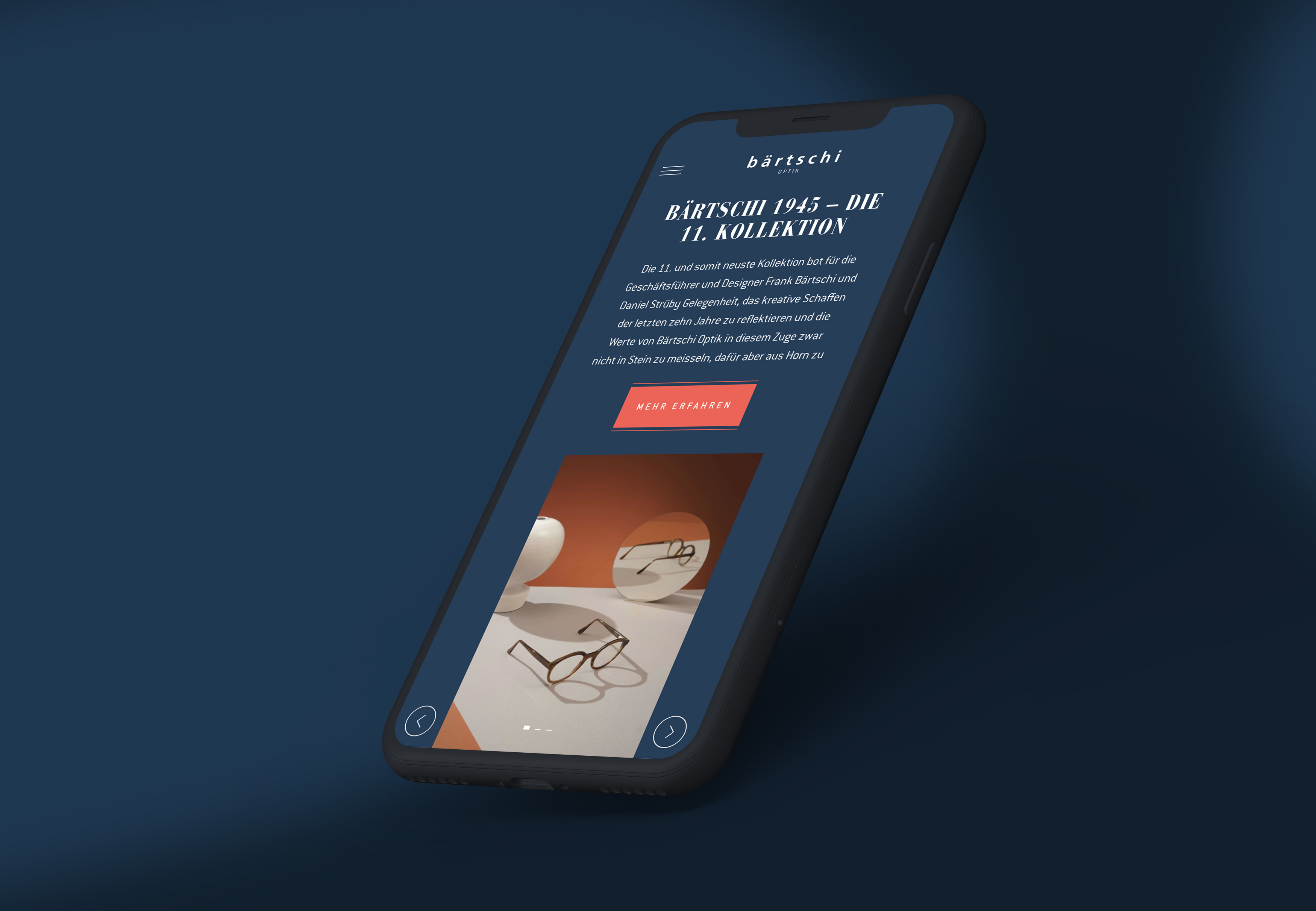 Das bestehende Design und die visuelle Identität von Bärtschi Optik wurden aufgenommen und neu full responsive aufgebaut. Von unterwegs kann die Website also neu mit dem Smartphone in Bärtschi-Qualität erlebt und entdeckt werden. Um der Kundschaft auch auf der inhaltlichen Ebene ein benutzerfreundliches Web-Erlebnis zu gewährleisten, wurde im Design die Usability stark optimiert. Dank der neuen Inhaltsarchitektur und der stark reduzierten Navigation ist es ein Leichtes sich zu orientieren und die gewünschten Informationen rasch auf der Website zu finden.