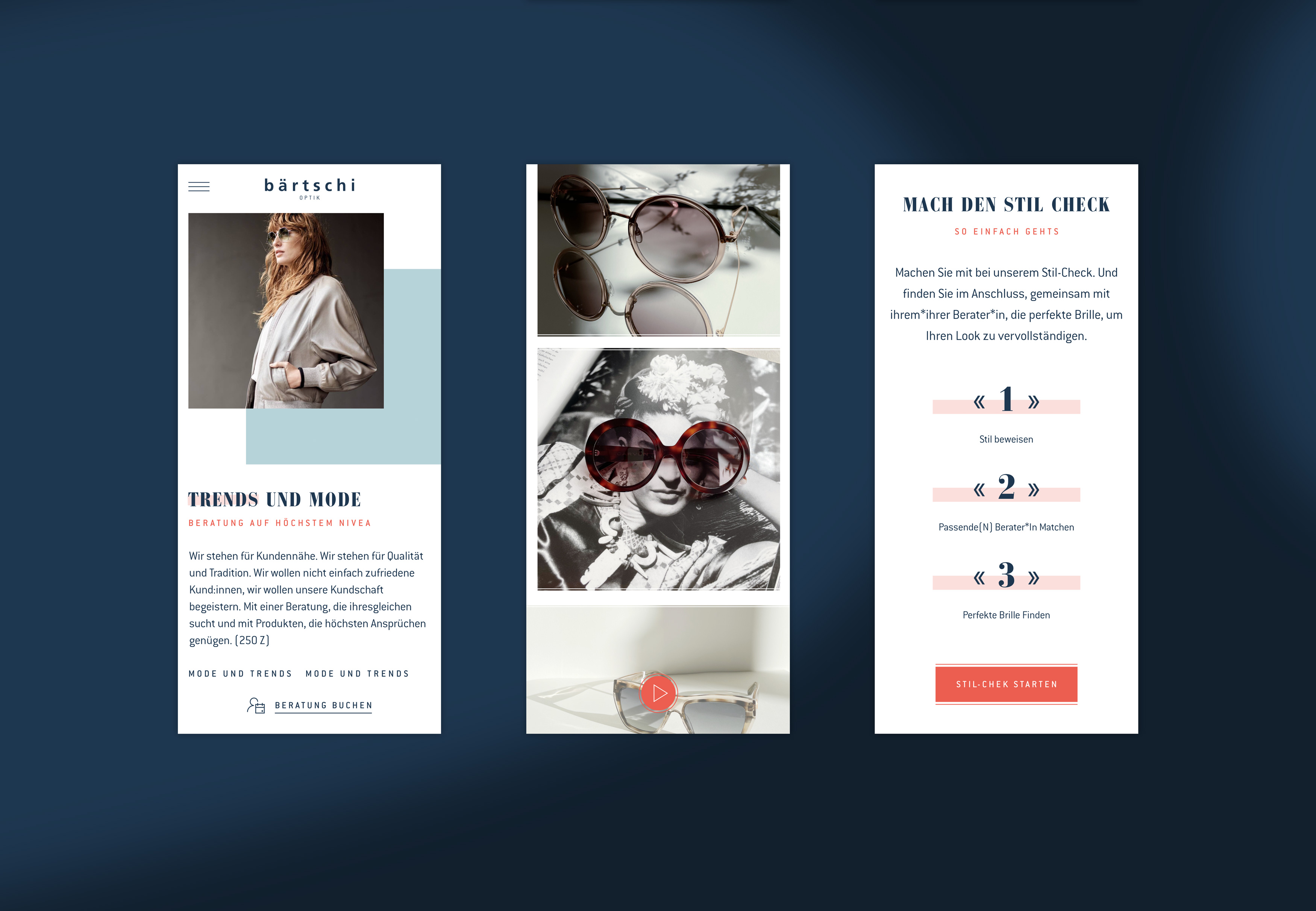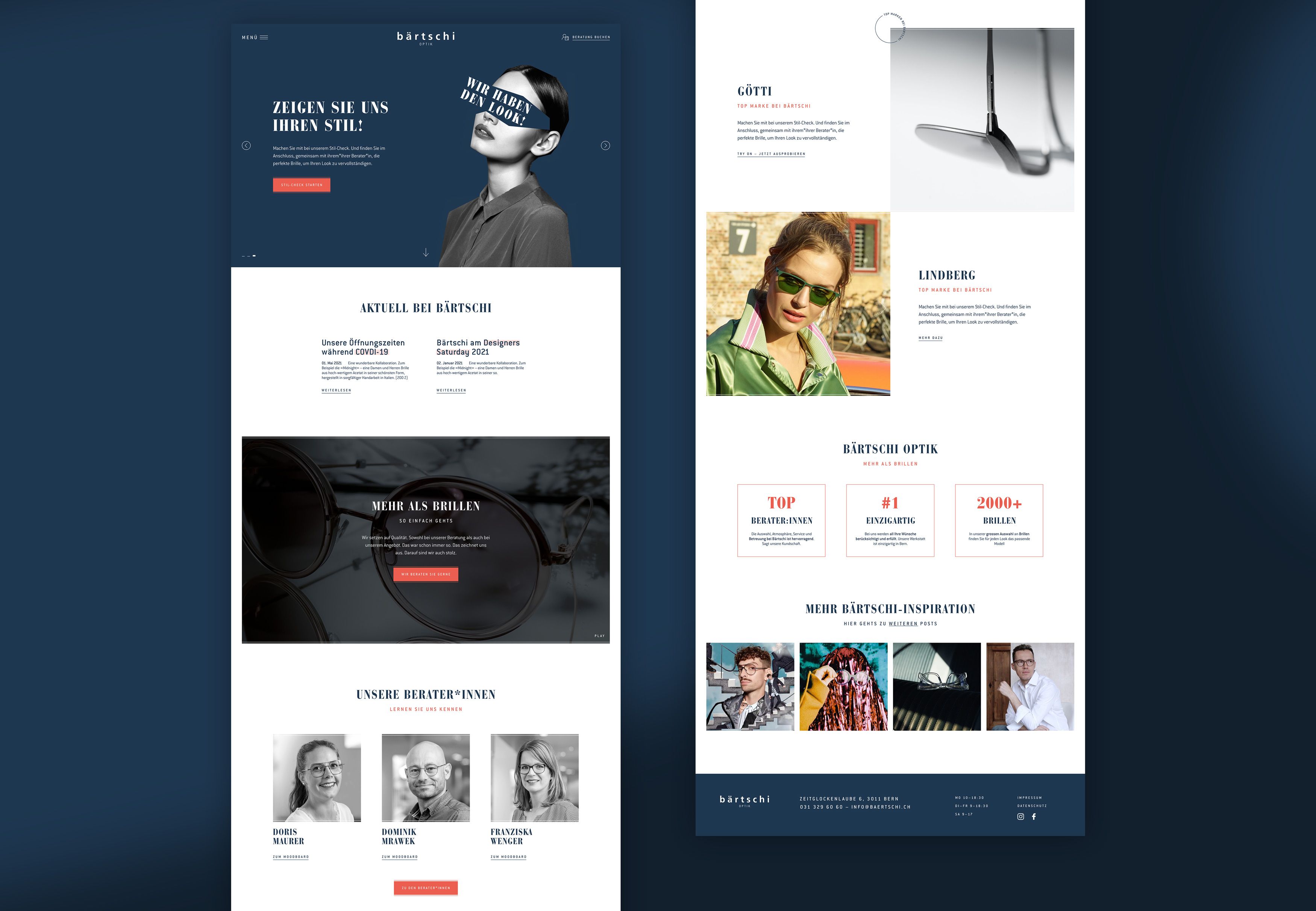 Bärtschi geht mit der Zeit und hat seinen Webauftritt in sorgfältiger Zusammenarbeit mit Kargo überarbeitet. Ein optisches Redesign das die bestehenden Werte unterstreicht und hervorhebt. Damit bleibt sich Bärtschi treu, behält den seit 75 Jahren bestehenden Charme und schafft einmal mehr eine Symbiose zwischen Moderne und Tradition. Wie bei der erstklassigen Beratung und dem herausragenden Kundenservice von Bärtschi Optik üblich, stehen bei der neuen Website die Bedürfnisse und Zufriedenheit der Kundschaft im Zentrum. Aus diesem Grund wurde auch auf dem neuen Webauftritt bewusst auf einen Online-Shop verzichtet. Denn erstklassige Beratung erfordert persönlichen Kontakt.