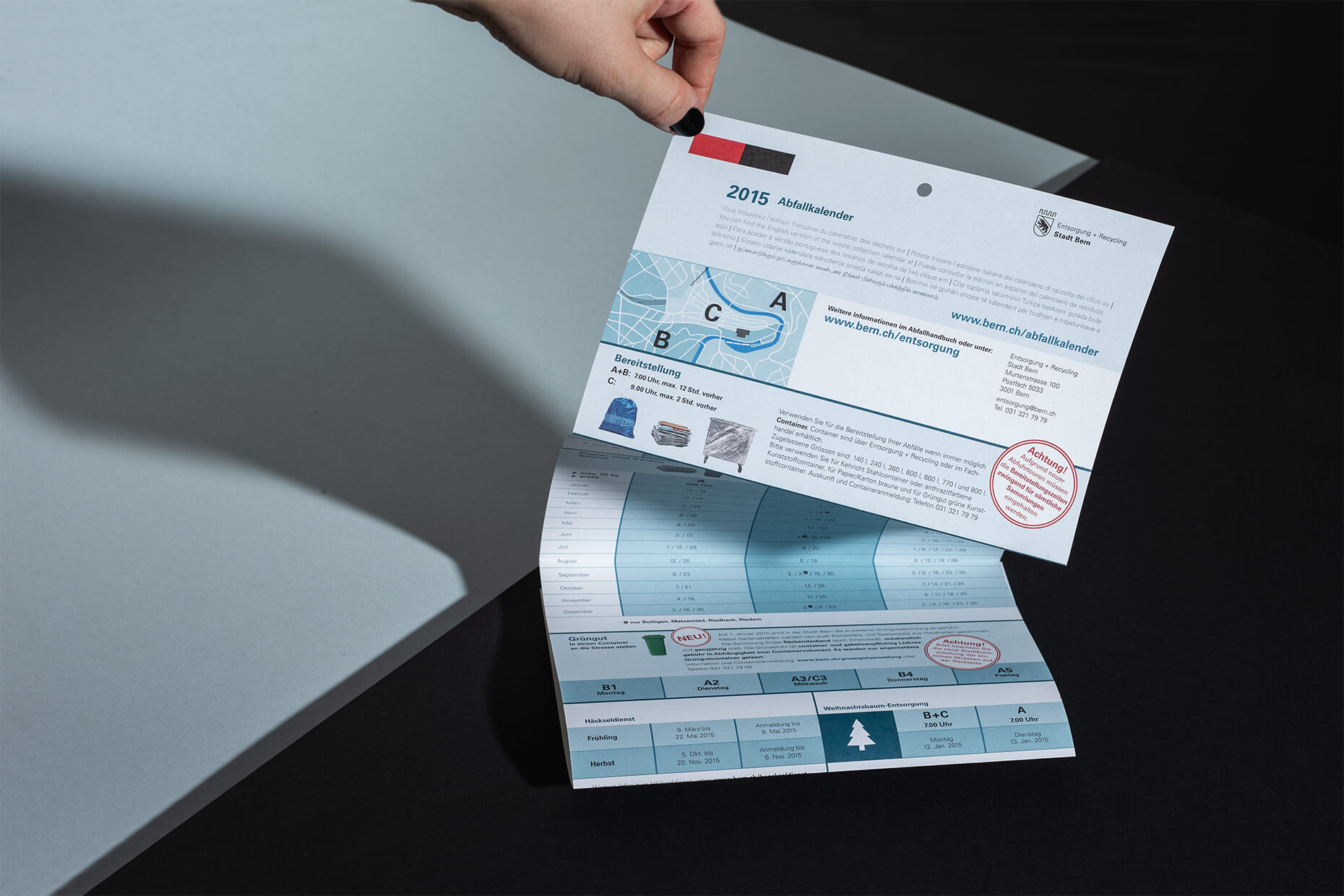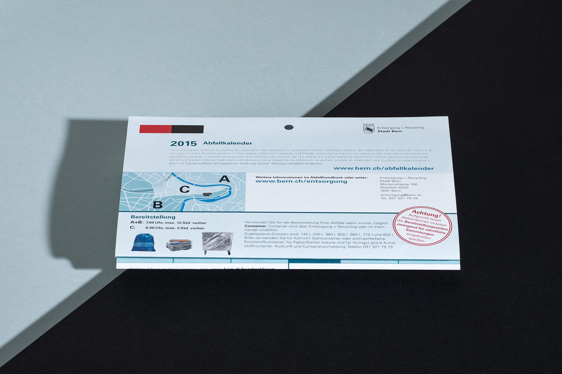 Entsorgung + Recycling Stadt Bern überlässt den Abfall nicht dem Zufall und beauftragt KARGO mit der Entwicklung eines neuen Erscheinungsbildes. Von der Postkarte bis hin zum Kehrichtabfuhrwagen wird bunt bemustert!