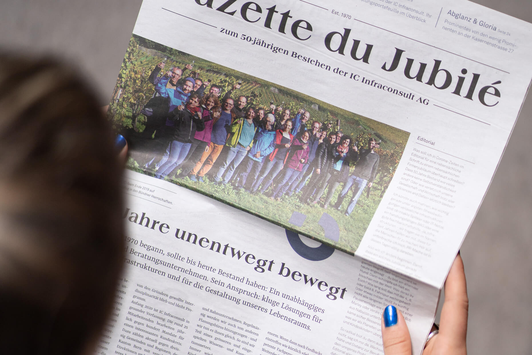 Zu ihrem 50-jährigen Bestehen durften wir das schweizweit tätige Unternehmen mit einem neuen Corporate Design und neuer Website (mit technischem Support von Duotones) ausstatten. Verbürgte Erfahrung und jugendliche Frische zugleich sollte der renovierte Auftritt ausstrahlen. Das Ergebnis: Ein grossartiges Makeover, welches dem Kunden seinen Wiedererkennungswert über alle Kanäle hinweg schenkt.