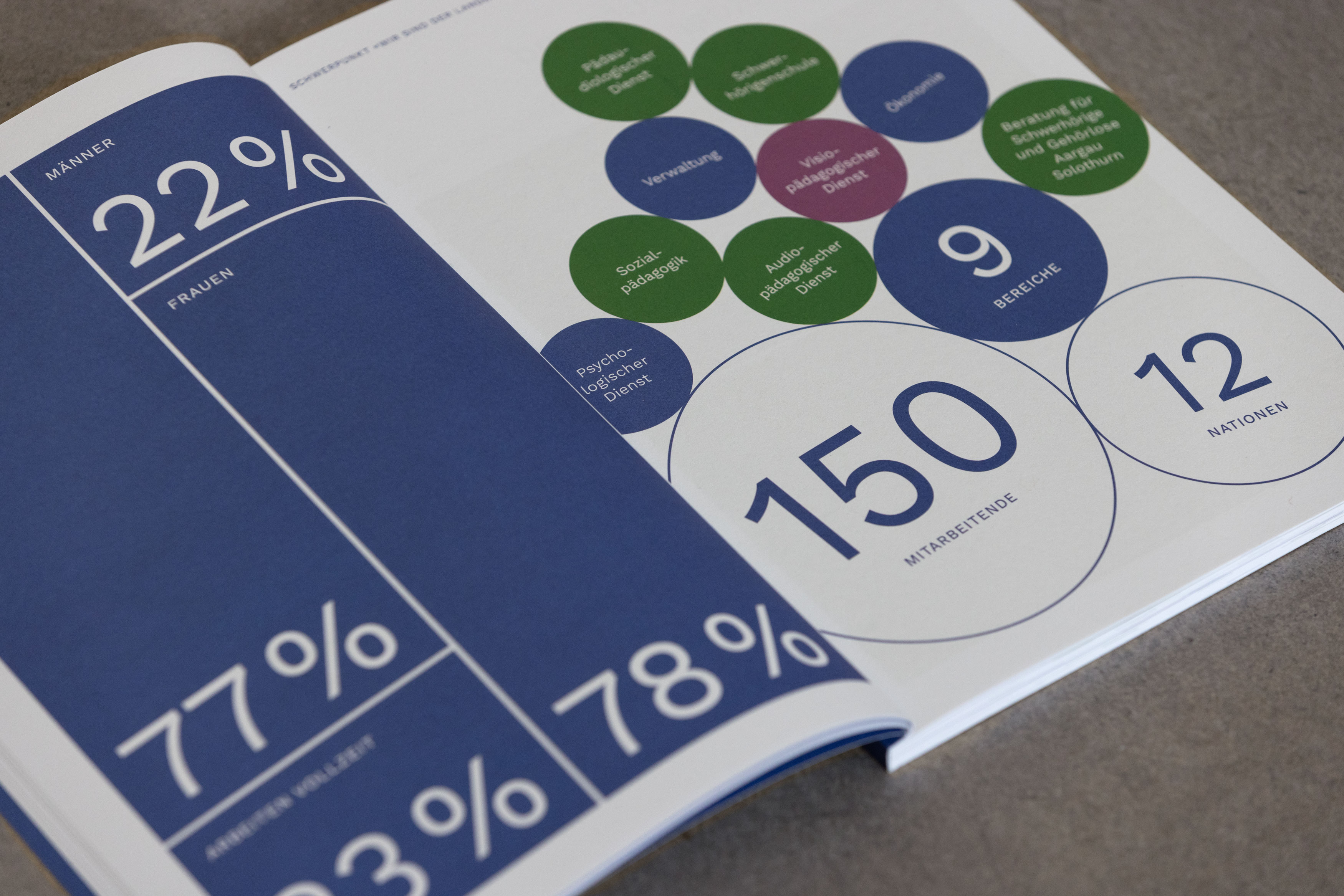 Um langfristig eine schlanke und kostenschonende Umsetzung des Brandings sicherzustellen, wurde auf Fotografien, welche auch schnell an Aktualität verlieren, verzichtet. Stattdessen wurde eine einfache aber spielerische Welt an Illustrationen und ergänzenden Icons geschaffen, die sich von besonders bekannten Arbeiten aus der Pop-Art haben inspirieren lassen und den Neuauftritt über alle Touchpoints hinweg prägen und aufheitern. Während die Barrierefreiheit besonders auf digitaler Ebene nach modernsten Standards umgesetzt werden konnte, blieb im analogen Bereich Raum, um die Neuerungen unter anderem durch die Papierwahl auch haptisch erlebbar zu machen. Das Rebranding umfasste auch das Screendesign und Entwicklungsbegleitung der Website, die Erstellung von Drucksachen und Briefschaften, Vorlagen für die Office-Palette, Grusskarten und Stelleninseraten, die Signaletik für das Bildungszentrum sowie die Realisation des ersten Jahresberichts im neuen Kleid.