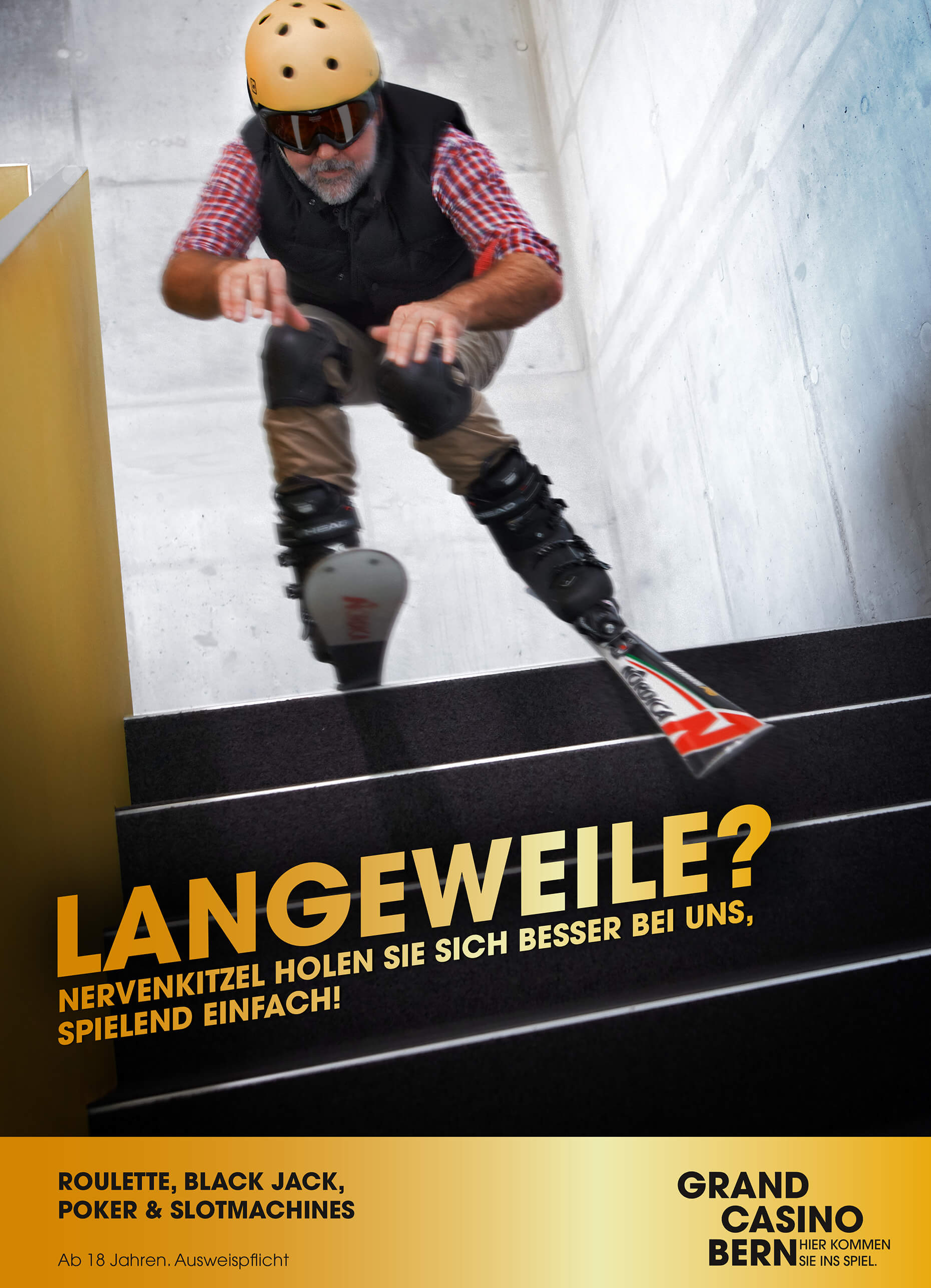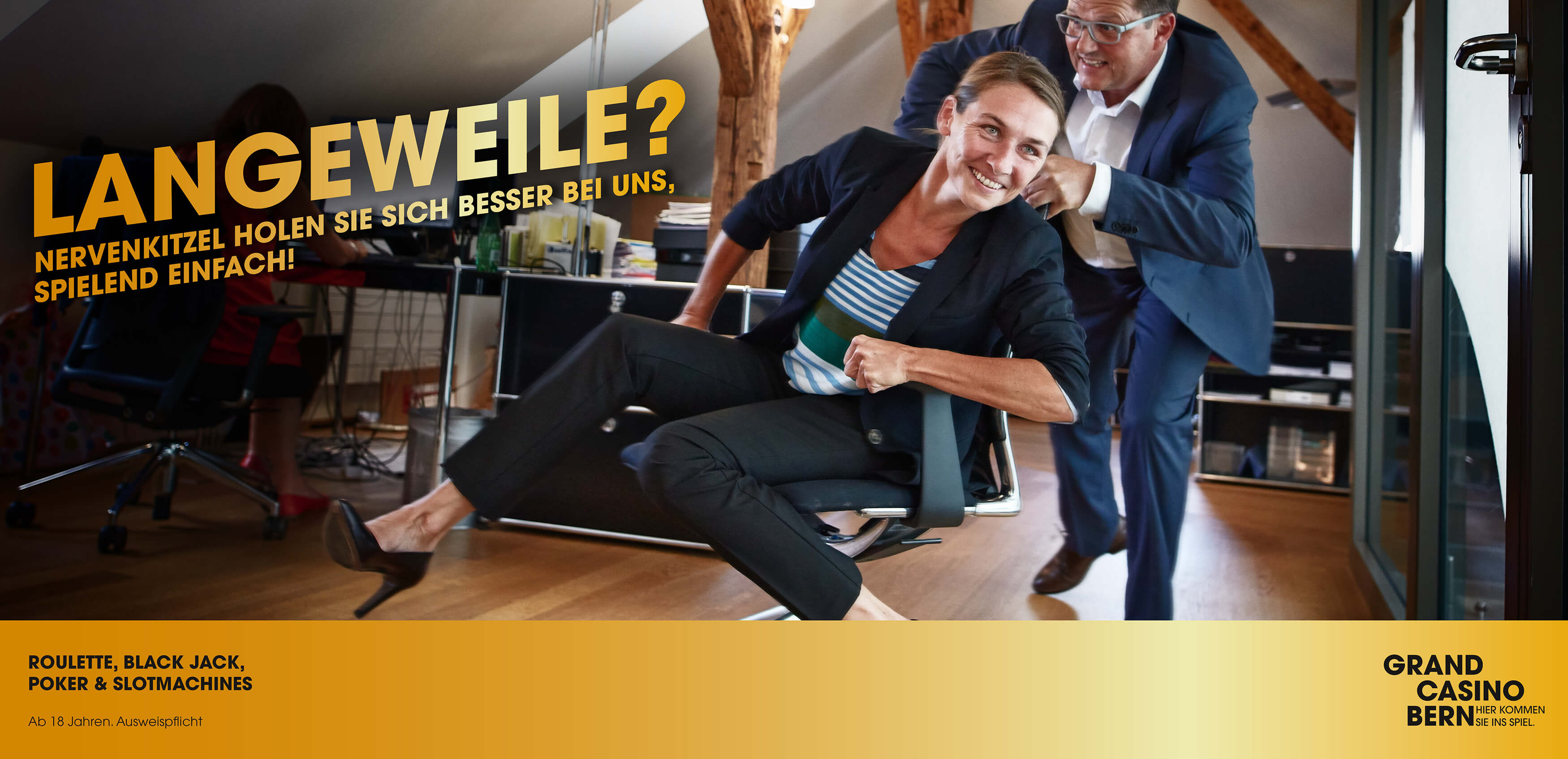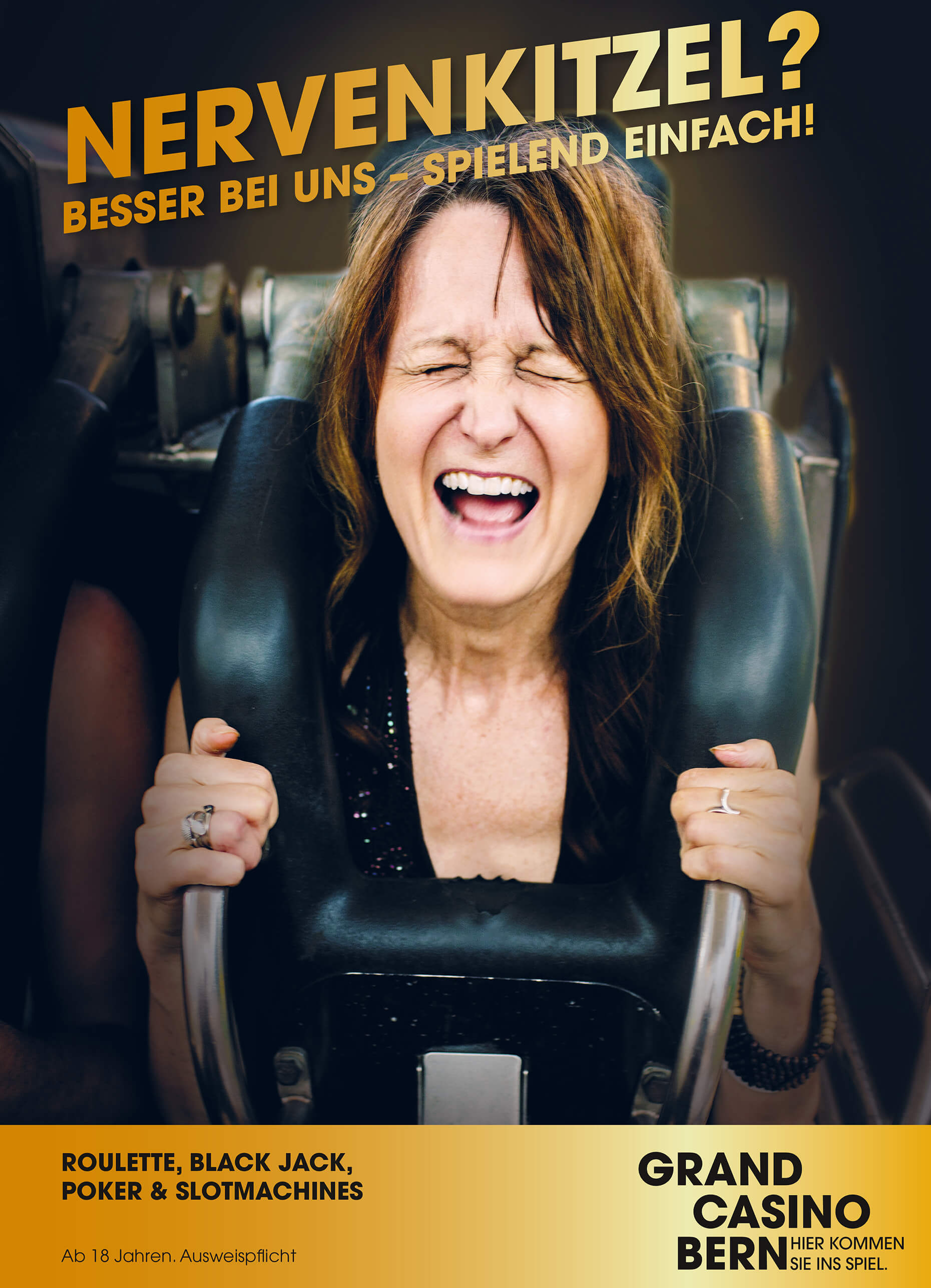 KARGO hat die Herbstkampagne 2017 zum Thema «Nervenkitzel» für das Grand Casino Bern konzipiert und umgesetzt. Mit witzigen Sujets und einer zielgruppengerechten Ansprache – humorvoll, gewitzt und auch ironisch sowie einer klaren Positionierung, wurde die Kampagne mit dem Claim «Nervenkitzel, spielend einfach – besser bei uns» im Herbst 2017 – während zwei Wochen im Raum Bern ausgestrahlt. Die Kampagne wurde on- und offline mit hoher Zielgruppenaffinität beworben – von der Plakatwerbung, über Beiträge im PassengerTV, GasstationTV, Radio wie auch Online und auf allen Social Media Kanälen des Grand Casino Bern.