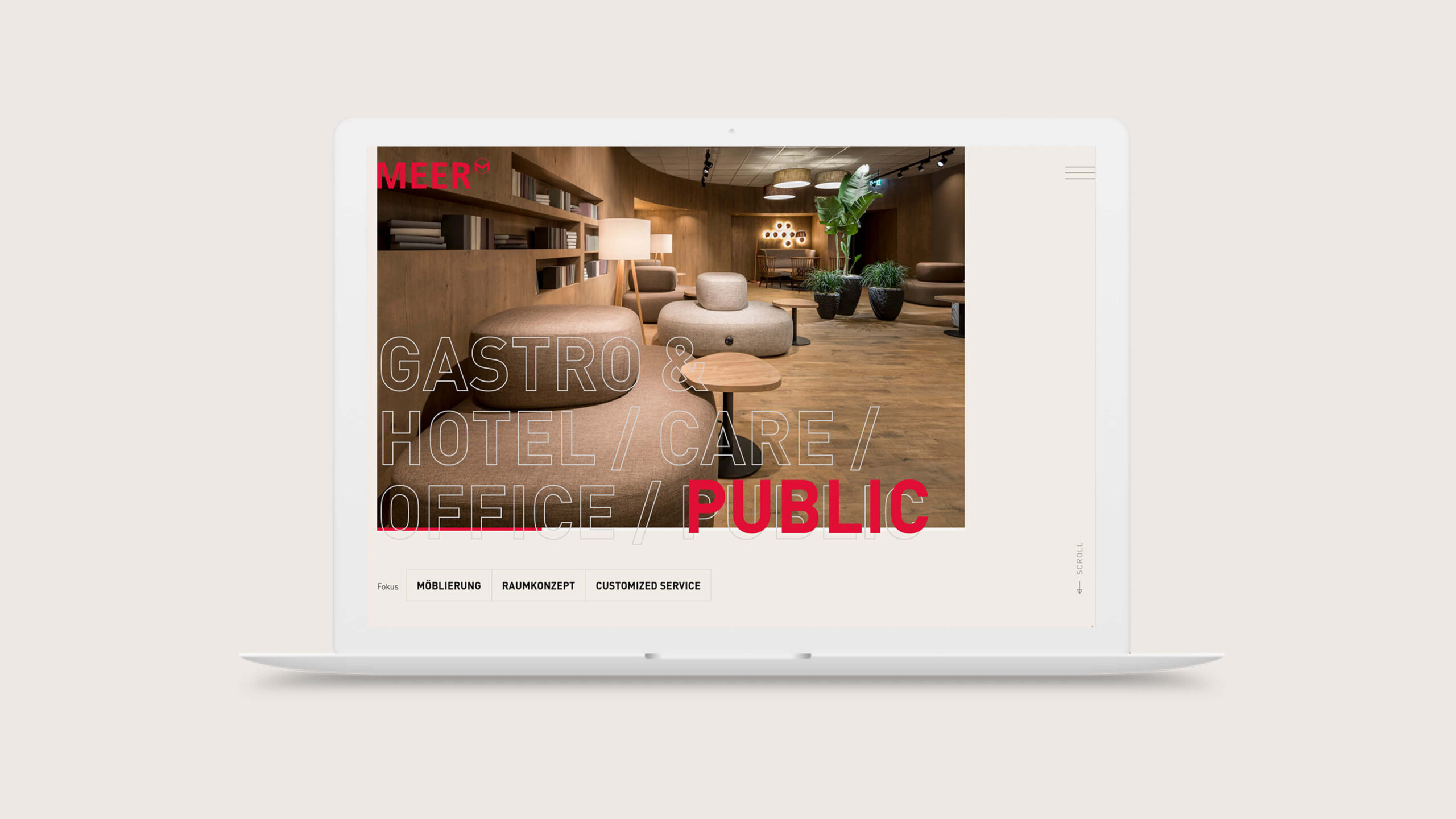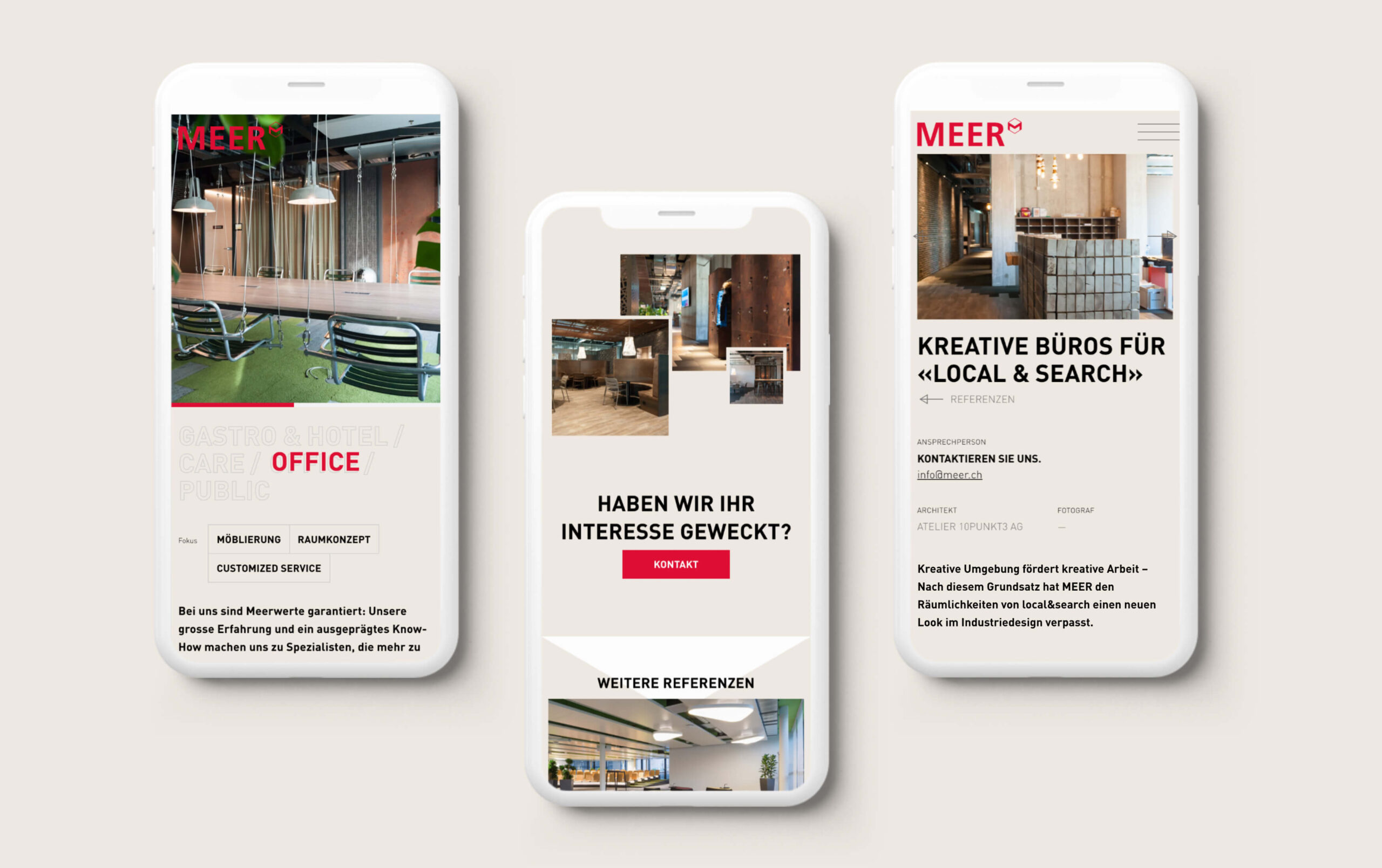 Die Webseite der «Meer AG» wurde komplett überarbeitet und erstrahlt in neuem Gewand. Dabei wurde auf eine möglichst flache Navigationshierachie geachtet, welche durch einen spielerischen und unkomplizierten Zugang den User durch den Inhalt leitet. Die Interaktionen sind dabei stringent und verleihen dem Brand eine eigene Note. Grosszügig aufbereitet finden sich neu die Referenzen als ganzheitliche Seiten im Layout wieder. So wird die Arbeit von «Meer» noch transparenter und dient als Portfolio für weitere Projekte. Die Seiten sind im CMS modular aufgebaut, damit sie frei zusammengestellt den Inhalt bestmöglich inszenieren. Die Webseite wurde zusammen mit Duotones umgesetzt, welche für das Front- wie auch das Backend zuständig waren.