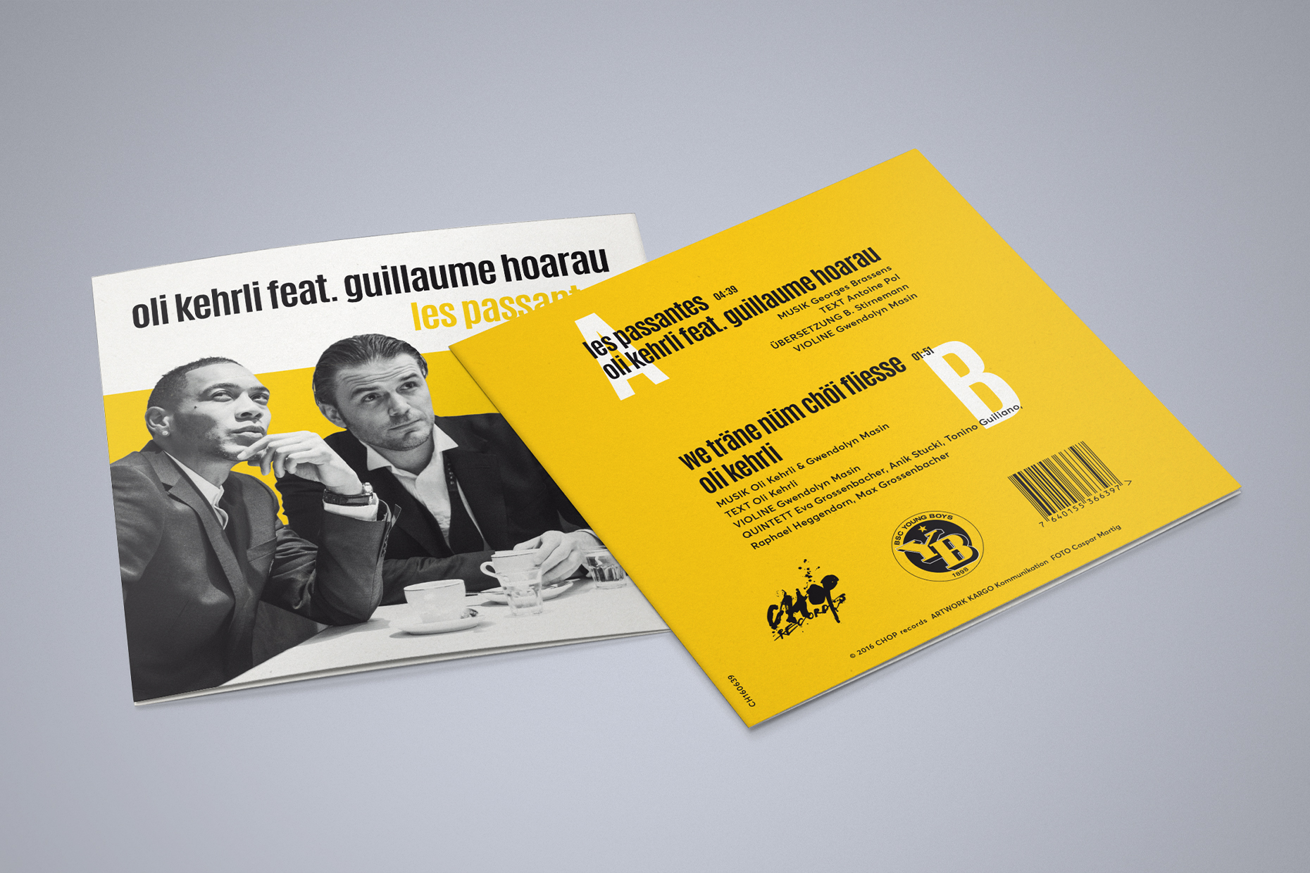 In Zusammenarbeit mit dem BSC Young Boys und Chop Records gestaltete KARGO das Cover der limitierten 7 Inch Maxi LP für den Berner Chansonnier Oli Kehrli feat. Guillaume Hoarau mit dem Song «Les passantes» (Orig. Georges Brassens). Ein ausdruckvolles Stück, gesungen in der jeweiligen Muttersprache.