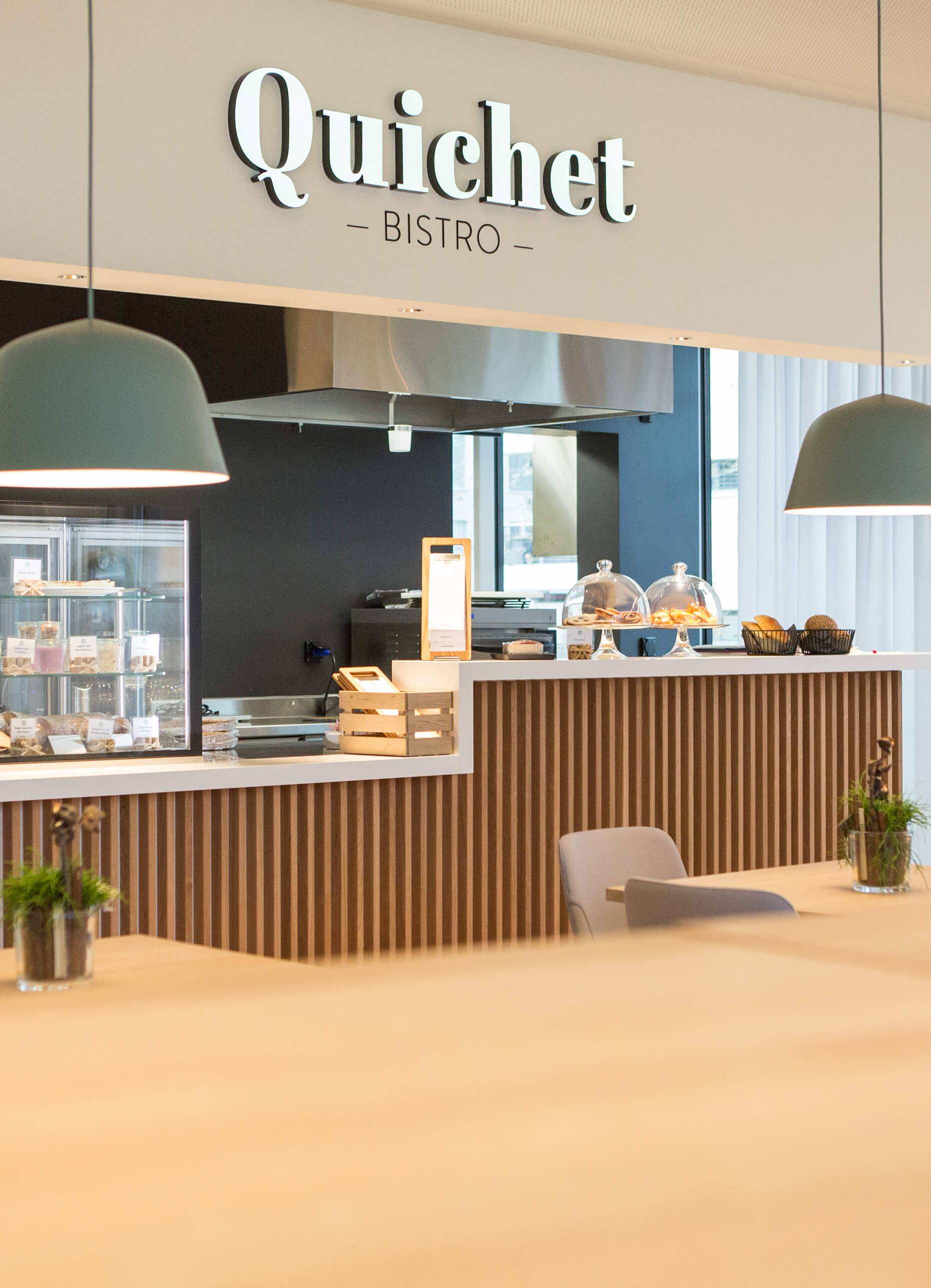 Im Rahmen des neuen Filialkonzeptes «Erlebnisbank» der Raiffeisen Sensetal wurde KARGO beauftragt, nebst Naming das gesamthafte Branding für das neue Bistro zu kreieren. Mit dem Namen «Quichet» nehmen wir Bezug auf die Örtlichkeit, die ehemalige Schalterhalle der Bank. Und auf die Quiche, eine Kuchenspezialität der französischen Küche.