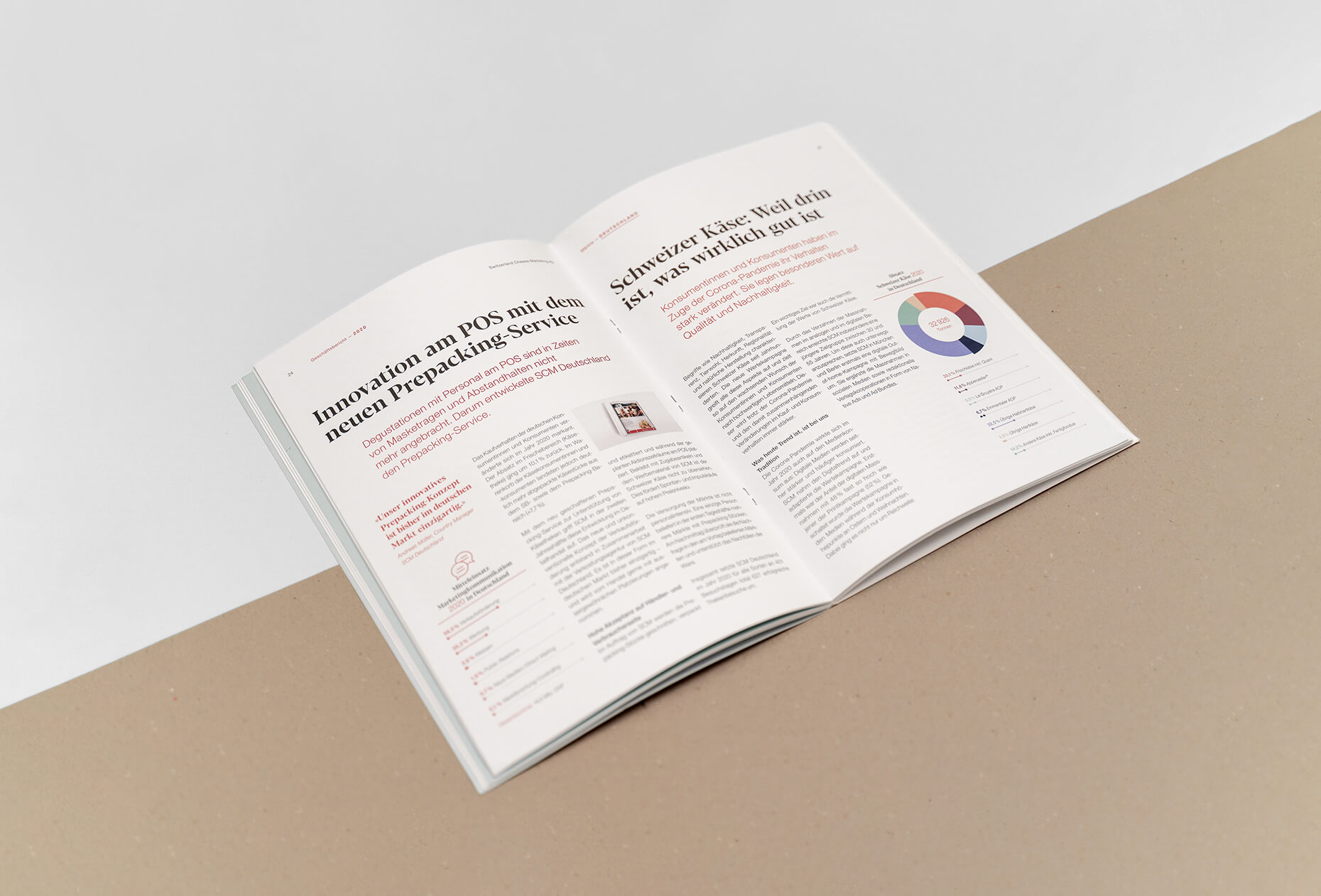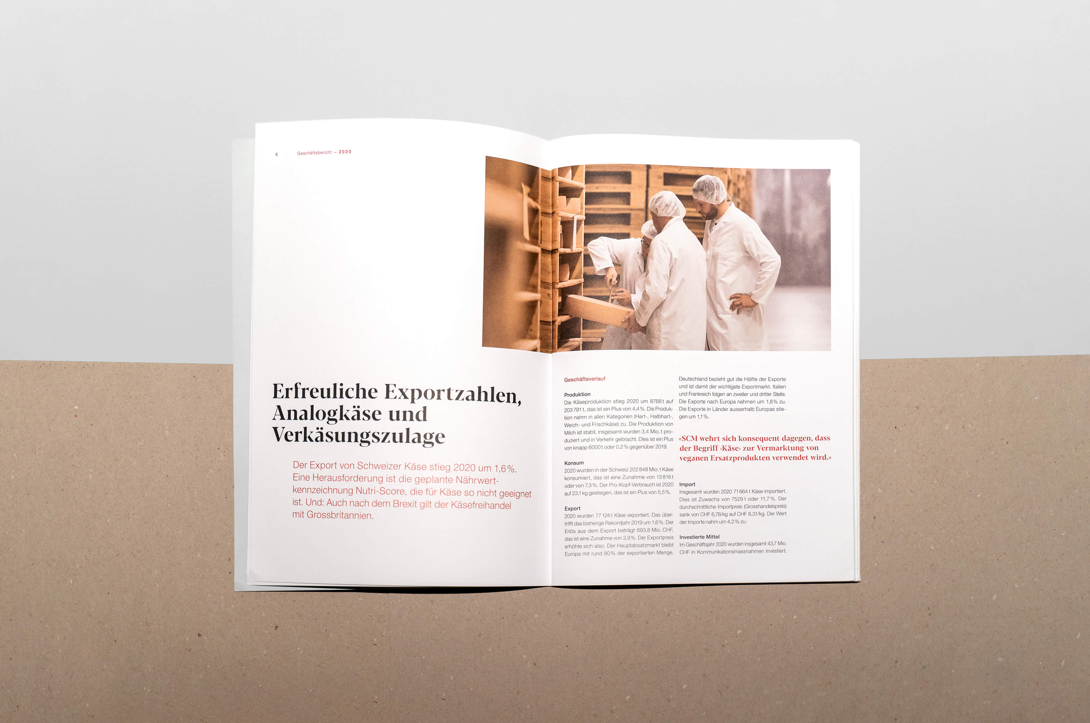 Jede:r Schweizer:in konsumierte im 2020 im Durchschnitt 23,1 kg Käse. Diesen und viele weitere spannende Geschichten rund um den Schweizer Käse durften wir in diesem Jahr im Geschäftsbericht festhalten. Gemeinsam mit Klarkom wurde dieser konzeptionell und gestalterisch neu aufgesetzt und lädt nicht nur branchenspezifische Zielgruppen zum lesen ein.