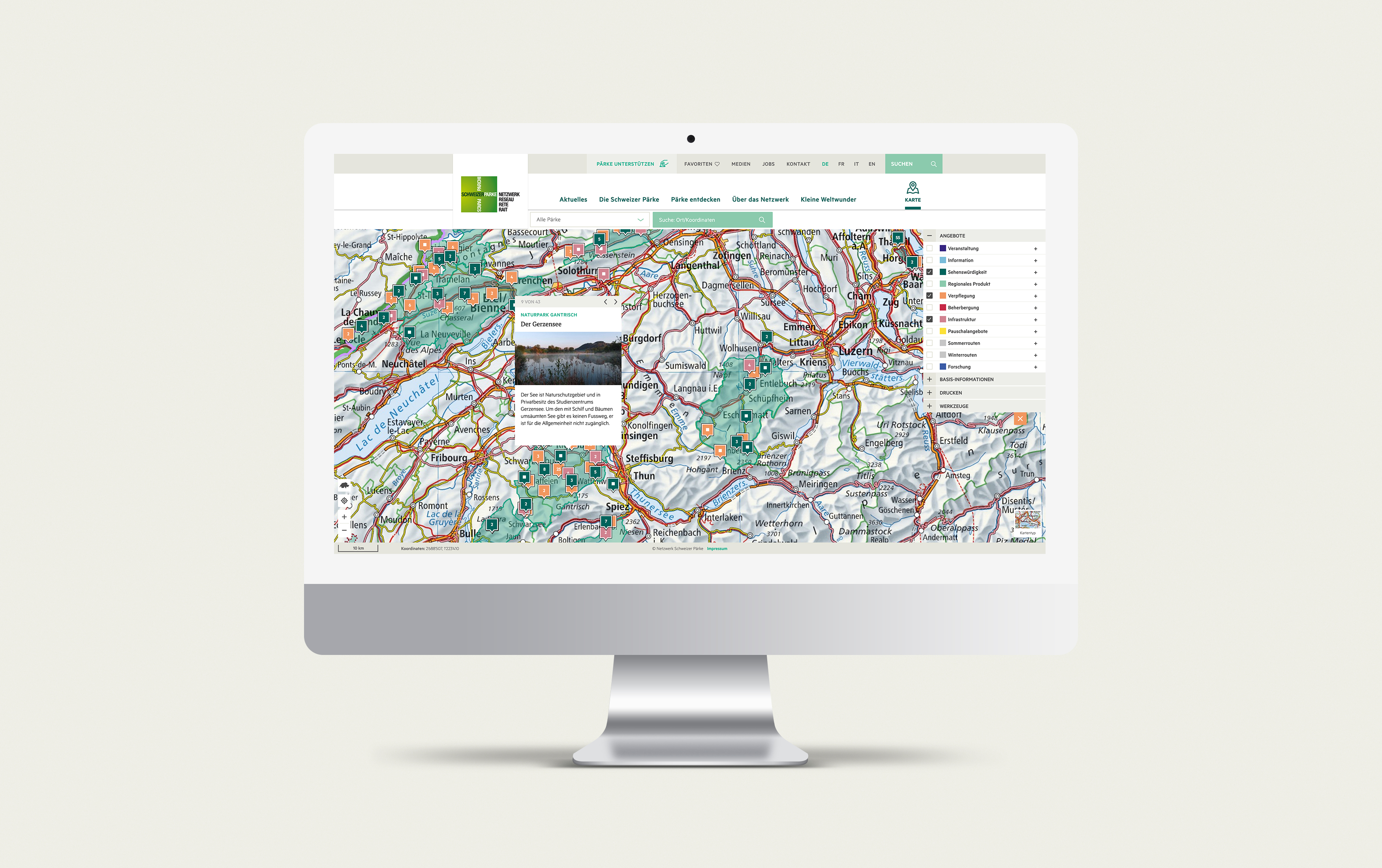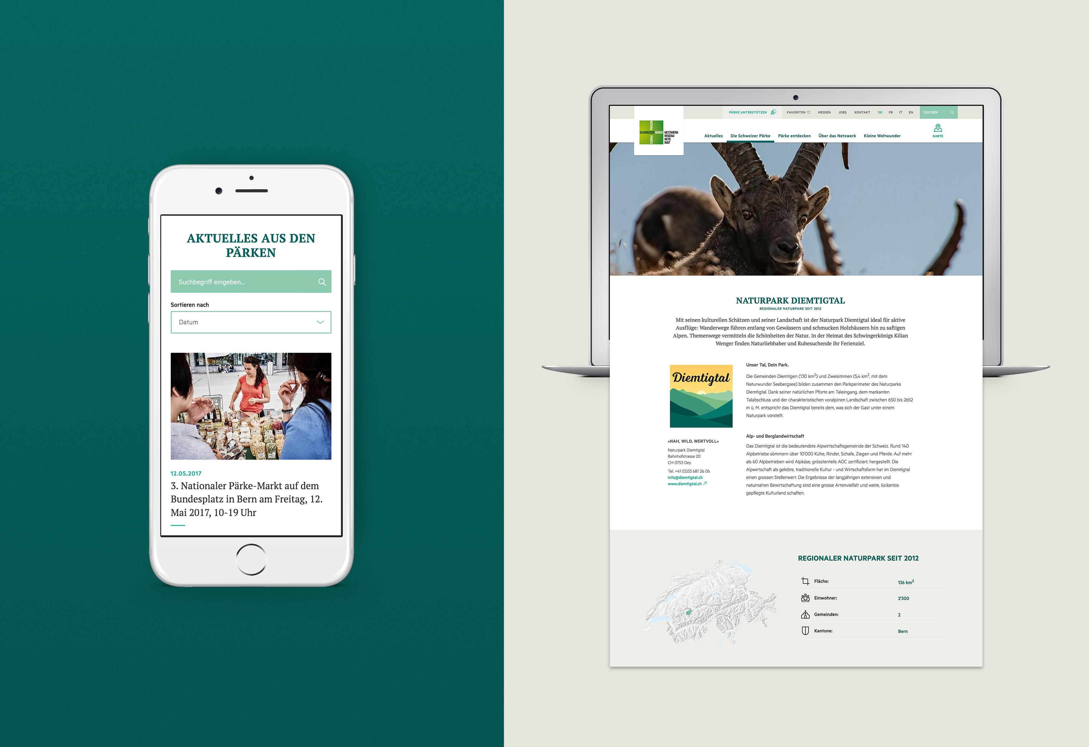 Das Netzwerk Schweizer Pärke ist die Dachorganisation aller 19 Pärke von nationaler Bedeutung in der Schweiz. Um die Pärke zu positionieren, vertritt das Netzwerk gemeinsame Anliegen, sei es auf politischer Ebene, mit Partnern aus dem Non-Profit-Bereich, der Wissenschaft oder der Wirtschaft. Anfang 2016 gewannen wir den Zuschlag für die Weiterentwicklung des Corporate Designs und der Gestaltung der neuen Website.